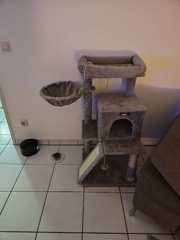 Die Katzen (Mädchen und Junge) suchen langsam ein ...
